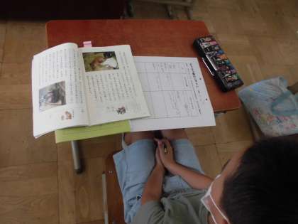 今日は,「お仕事紹介ブック」で仕事を紹介するために,獣医が「いつ」「どのような」仕事をするのかを見つけながら読もう,というめあてで学習をしました。昨日の学習で,「いつ」を表す言葉を見つけられたので,今日は「どのような」仕事をしているのかを文章から見つけて表にまとめていきました。獣医さんが「いつ」「どのような」仕事をしているのかもっと詳しく知れた子ども達でした。