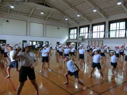 運動会に向けて,ロックソーラン節と台風の目の練習を行いました。今日は5・6年生でそろって初めての台風の目の練習でした。6年生がいい声掛けをたくさんしてくれ,どのチームもチームワークがよくなっていました!