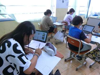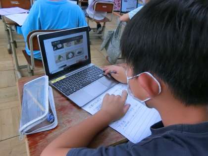タブレットなどを活用して京都の伝統にはどのようなものがあるか調べました!一人一人,興味のあるものが見つかったようです。