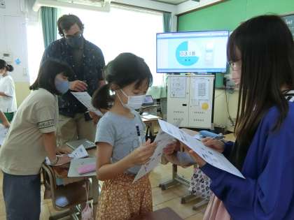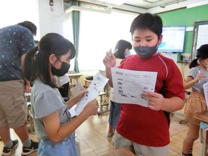 今日の学習では,放課後にいつ,どんなことをしているのかについて,英語で尋ね合いました。話がどんどん広がって,とても楽しく交流できたようです。友達が放課後に何をしているかは,日本語でもなかなか話すことではなかったので,友達の新しい情報を知ることができて喜んでいました。