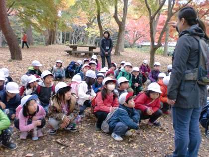 ふかふかの落ち葉の絨毯の上を走り回りました。