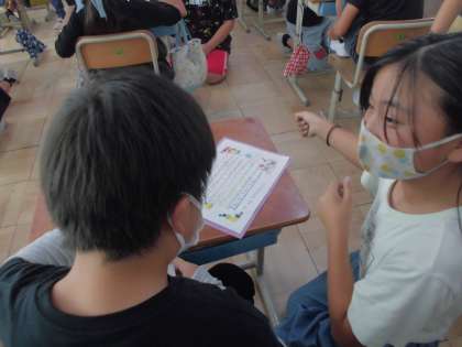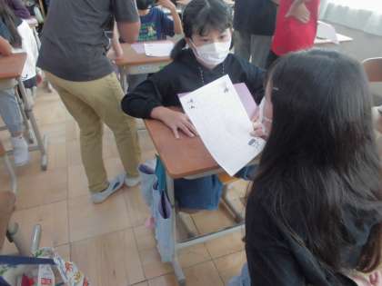 アイビーペア交流 公開日 2022/10/14 更新日 2022/10/14 3年担任から 運動会が終わり、アイビーペアにあてて書いたお手紙を交換しました。3年生の教室に5年生が来てくれて、一人一人、手紙を読み合ったり感想を伝え合ったりして交流しました。5年生が上手にリードしてくれて、短いけれどとても楽しいひと時でした。
