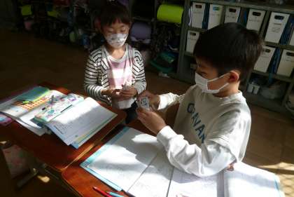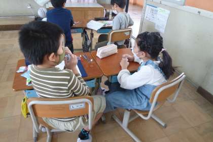 九九の練習がんばっています!! 公開日 2022/10/18 更新日 2022/10/18 2年担任から 2年生は算数で「かけ算(1)」の学習をしています。 これまでに、5の段、2の段、3の段、4の段と学習を進めてきました。 しっかりと覚えて、九九を唱えることができるように、今日はお友達とペアでかけ算カードを練習しました。交代で問題を出し合って楽しく学んでいます。