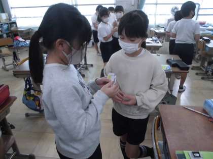 カードを使って、欲しいものを尋ねたり答えたりして伝え合いました。今日始めたばかりなので、何回か練習していきたいです。