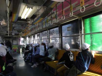洗車体験をさせてもらったときは、車内から歓声があがっていました。その後、貸切電車で四条大宮まで行き、インタビューをしました。事前に質問を考えていたので、色々と教えて頂いたことをまとめて新聞にして発信したいと思います。お土産までいただきました。