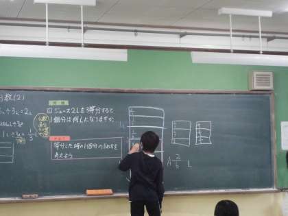 算数科は新しい単元の学習に入りました。自分の考えについて交流しています。