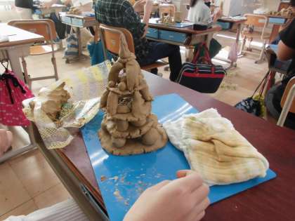 図画工作の学習で「立ち上がれ!ねん土」をやりました。土ねんどのたくさんのパーツを作り,組み合わせ,できるだけ高く積み上げられるよう一生懸命頑張っていました。支えとなる柱を作ったり,周りを囲んだり,高く積み上げられるコツを自分たちで探しながら作っていました。