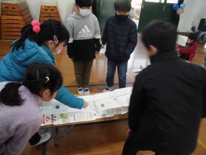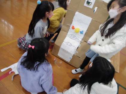 振り返りでは,「捨ててしまうものがおもちゃになっていて楽しかった。」「いろんなゲームが考えられていて,すごかった。」という,感想がありました。