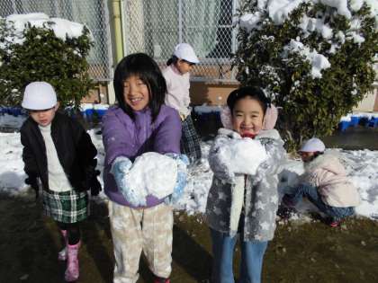 今日は雪遊びをしました。昨日からの大雪でみんなの安全も心配していましたが,朝には楽しく元気に遊びました。学校で雪で遊べることはめったにないので,とっても嬉しそうでした♪