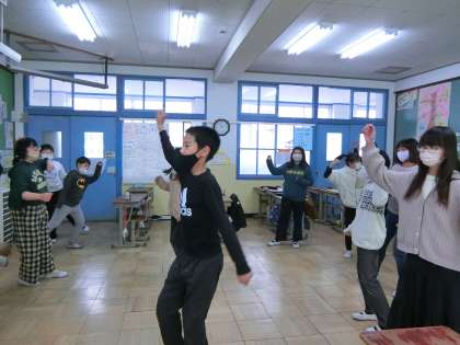 ダンス係が「ジャンボリーミッキー」のダンスをみんなに教えてくれました。ダンス係がお手本をみんなに見せてくれた後にみんなで踊りました!ノリノリで楽しんでいました!踊ると体が温まりますね。