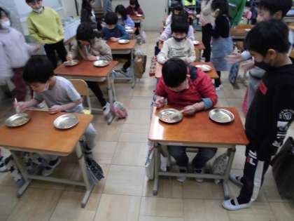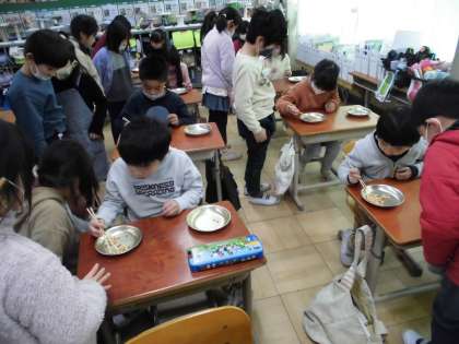 給食週間の取り組みで豆つまみ大会を行いました。子ども達は初めての活動で、とってもドキドキワクワクして参加していました。1年に1度の活動なので、「来年に向けて、箸の使い方を特訓したいな〜!」「来年は今年より、多く豆をつかみたいな。」と、とっても楽しそうに参加をしていました。