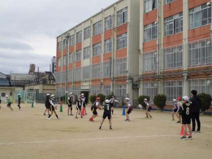 体育で最後のタグラグビーをしました。どのコートでも熱い戦いが繰り広げられていました。そんな中で、友達に対する温かい声かけもたくさん聞こえてきて、運動場は温かい空気に包まれていました。