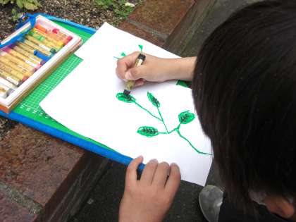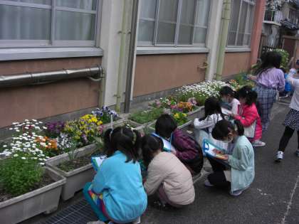 図画工作科の「お花見スケッチ」の学習を行いました。春の花や生き物を探して、クレパスでのびのびと描きました。どの子も素敵な感性で、自由に描く姿がとても素敵でした。
