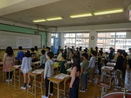 3年1組、2組合同で音楽の学習を行いました。学校探検をしていた1年生が見に来てくれました。1年生のお手本となるような良い歌声で歌うことができました。
