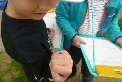 生活科の時間に運動場を散策しました。春に咲いている草花や、その周りを飛んでいる蝶々、植木鉢の下にすみかを作っているダンゴムシなど、子ども達には、たくさんの発見があったようです。