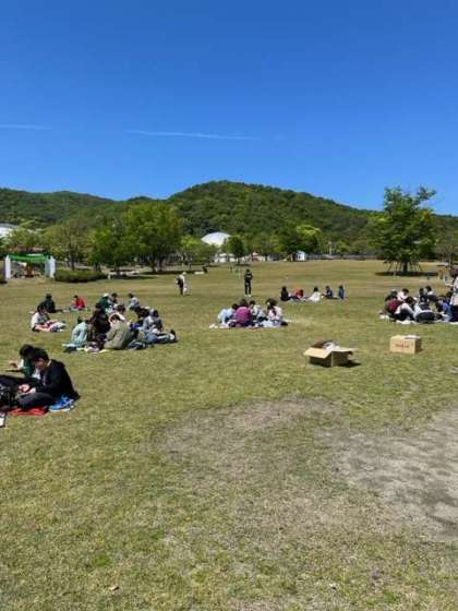 あすたむらんど徳島に着きました。好天に恵まれ、屋外でおいしく昼食をとることができました。昼食の後は園内施設の見学です。科学について学べる体験型の学習が充実しており、園内には緑もいっぱい。最高のロケーションです。