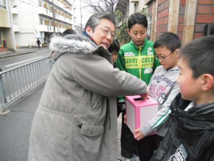 児童会の子どもたちの声にも力が入ります。集まった募金は,