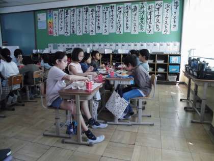 給食の時間賑やかな様子が見られます。友達との会話が、より楽しい時間にしてくれますね♪
