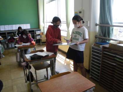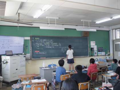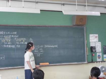 自分の考えを図に表して全体に伝えています。 練習問題が終わった人は自分達で問題を出し合っています。