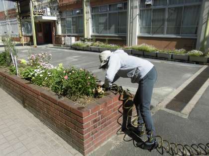 色とりどりの草花が、子ども達の登下校を見守っています。
