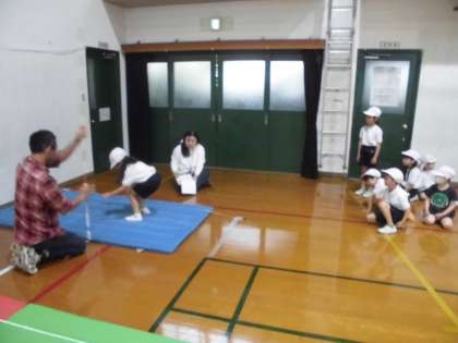 新体力テストに取り組みました。今週の火曜日に50メートル走を測定し、今日は立ち幅跳びを測定しました。始めに3回練習し、本番に臨みました。1回目より2回目のほうが記録も伸びていました。