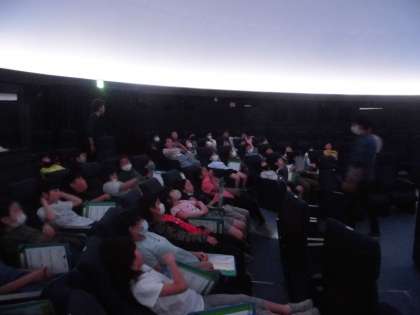 科学センターでプラネタリウムを見ました。前半は「星座」について教えてもらいました。京都市の明かりをすべて消した夜空の様子がとてもきれいで、子ども達も感激していました。後半は「月」について学習しました。6月下旬から7月初めの月の様子をプラネタリウムで再現して観察しました。星や月については理科でも学習します。