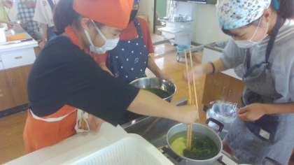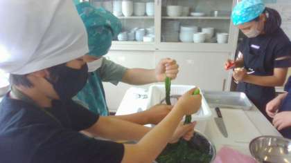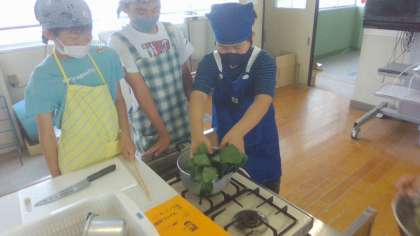 家庭科の学習でほうれん草とジャガイモを茹でました。調理をして食べるのは初めてで子ども達も朝からワクワクです。