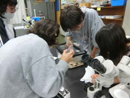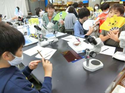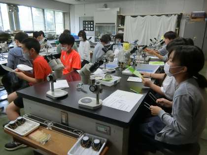 少し前のことですが…,科学センターではコオロギの体についてくわしく学習しました。初めてコオロギをじっくり見たと,とても興味深そうにしていました。