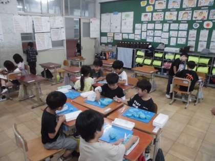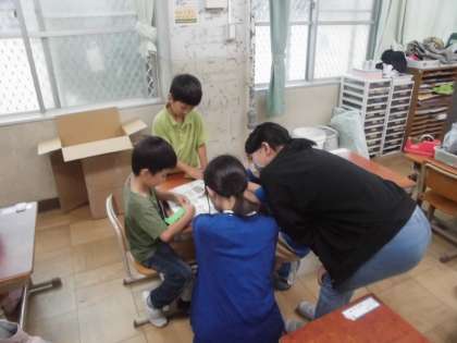 今日は一日中雨でしたが、休み時間お絵描きをしたり、粘土で好きなものを作ったり、友達と一緒に本を読んだり、6年生のお兄さんやお姉さんが一緒に遊んでくれました。思い思いの遊びを楽しんでいました。