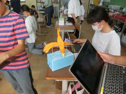 今日はくるくるクランクの鑑賞会をしました。土曜参観では,保護者の皆様に作品を見てもらえてとても喜んでいました。友達の作品の良い所をたくさん見つけました。
