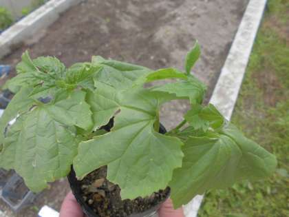 ツルレイシを畑に植えかえました。