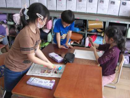 決まった係ごとに集まって、係活動のポスターをかきました。楽しい係活動になればよいですね。