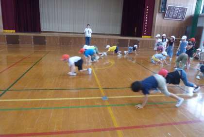 今日がら『みずあそび』が始まる予定でしたが、天候不良のため中止としました。その時間を使って『みずあそび』での約束を伝えたり、体育館をプールと見立てデモンストレーションをしたりしました。明日も天気が心配ですが、入れることを願いたいです。みずあそびの用意は学校に置いておきます。