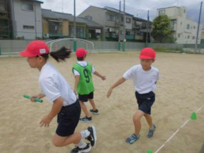 体育のリレーの学習のまとめとして学年リレーを行いました。これまでの学習の成果を発揮して、チームのベストタイムが出て喜ぶ姿が見られました。みんな力いっぱい走りました。