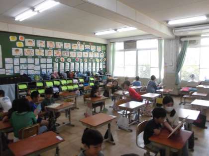 今週は読書週間でした。朝の読書時間に6年生が読み聞かせをしてくれました。1年生のために本を選んでくれました。1年生の子ども達も喜んで聞いていました。