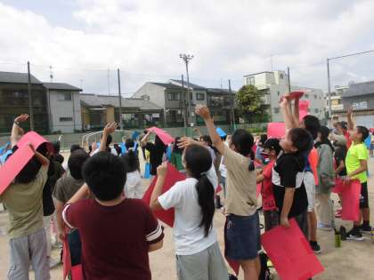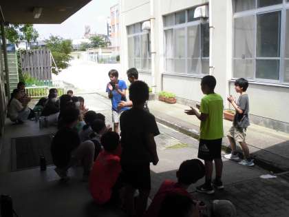学年写真の待ち時間に代表委員の人達がお笑いやゲームをしてくれていました。
