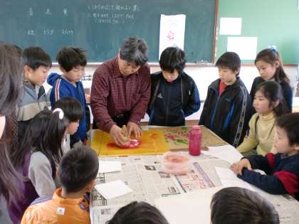思い思いの色や型で染めていき、世界に一枚のハンカチが完成しました。