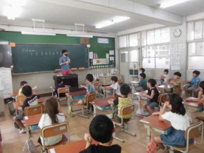 今日から新しいALTの先生が来られました。自己紹介をしてもらった後,数や色を学習しゲームを楽しみました。子ども達も喜んで楽しい時間を過ごすことができました。