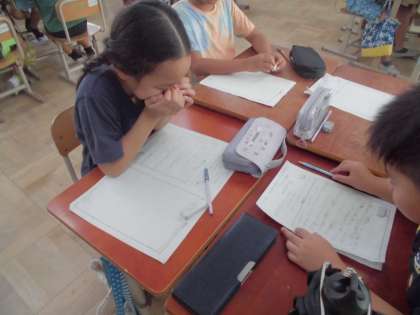 見学から帰ってきてからふり返りをしました。今日の見学でどんなことが分かったのかをグループで交流したあと、学習して分かったことや考えたことなどをまとめました。京都市のごみの量で一番多いのが生ごみであることや、このままだと、埋立地があと50年でいっぱいになってしまうということを知り、自分たちにどんなことができるかを考えていました。