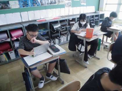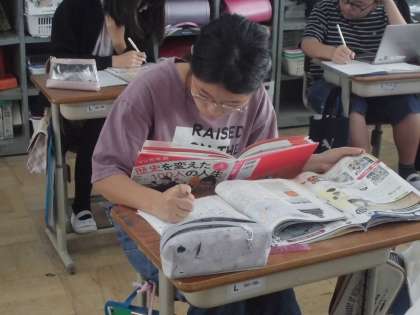 問題について教科書、書籍や辞典、パソコンなどを使って調べています。