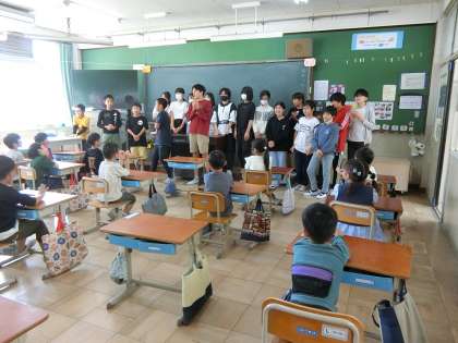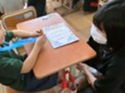 初めての体育学習発表会でがんばった1年生に金メダルをプレゼントしました。1年生からも賞状をもらってとても嬉しそうです。どんどん仲良くなってきました。