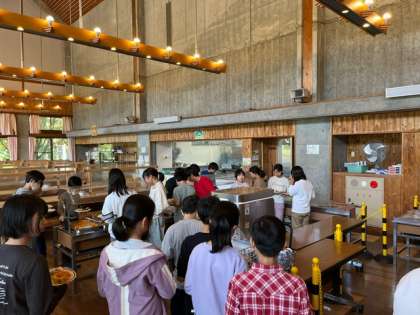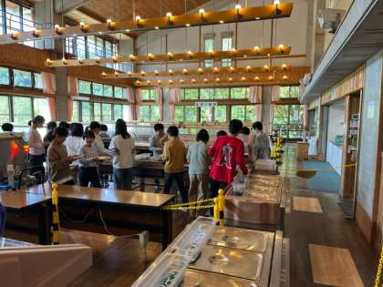 食堂で昼食タイム。ラーメンとバイキングです。