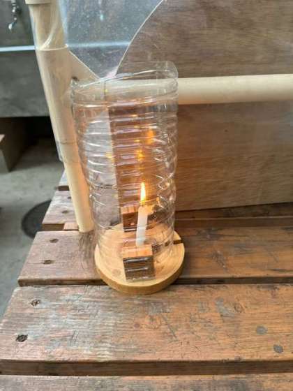 今日の献立はすき焼き煮です。火おこし体験でつけたろうそくの火をかまどに使います!