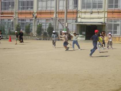 理科の「地面のようすと太陽」の学習で、かげふみ鬼ごっこをしました