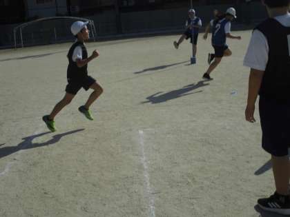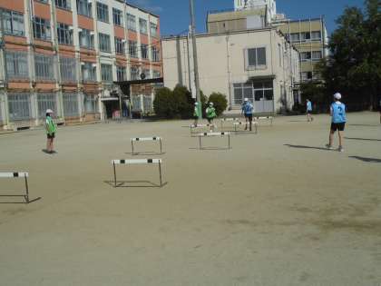 ハードル走が始まりました。自分達で準備をしたり、ローテーションをしたりして取り組んでいます。