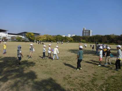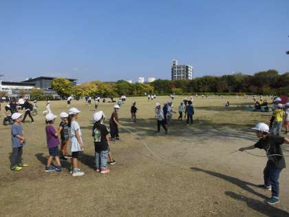 帰る前に芝生広場で遊びました。寝転んだり、鬼ごっこをしたり、かけっこをしたり大繩やフリスビーをしながら遊びました。