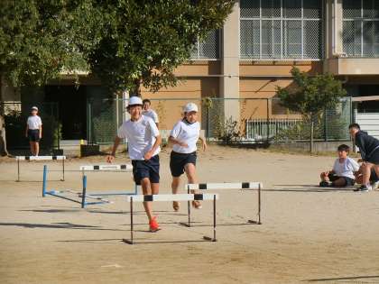 クラス対抗でハードル走の競争を行いました。体育科の学習で頑張ってきた成果を発揮しました。