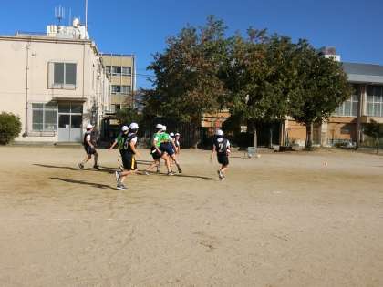 体育科の学習でタグラグビーを行っています。だんだんとルールが分かってきて,作戦を立てるチームも出てきました!