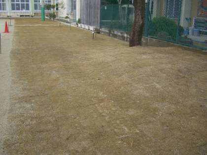 三日続いた雨があがり、放課後、待ち構えていたように子どもたちが運動場へ飛び出してきました。春です。午後3時30分で気温18.4度。温かいのを通り越して暑いくらいです。子どもたちは池の中をのぞきこみ、魚が元気に泳ぎだすのを楽しみにしていました。なんとなく、グランドの芝生も緑がかってきているように見えるのですが…。