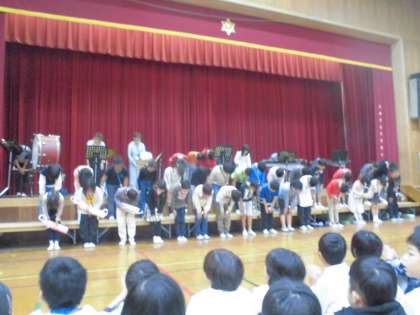 学習発表会の当日をむかえました。朝教室に行くと、子ども達がリコーダーを吹いていて、発表当日の緊張感や高揚感が伝わってきました。ステージに立った子ども達。全校児童を前にしてステージで発表するのは初めての体験です。とても緊張した表情でした。「大丈夫!みんなで一生懸命練習してきたから。成功するよ!」と舞台袖で子ども達を応援しながら発表が始まりました。